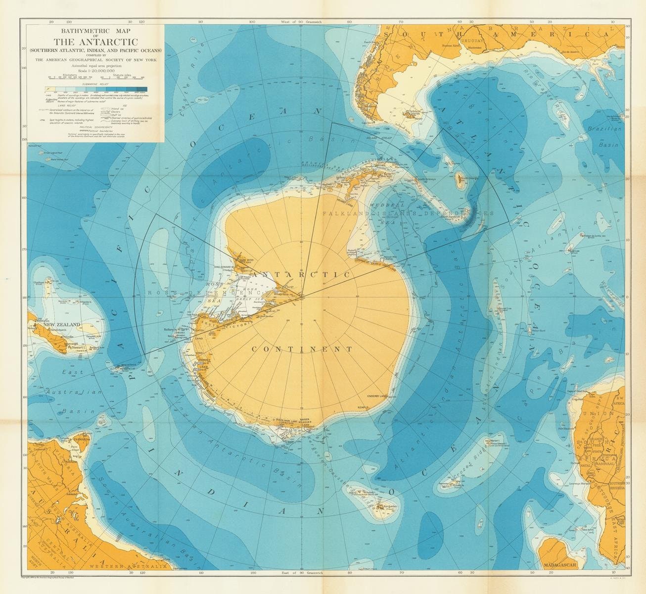 Old map of Antarctic subsurface topography, 1929 – PrintsXXL