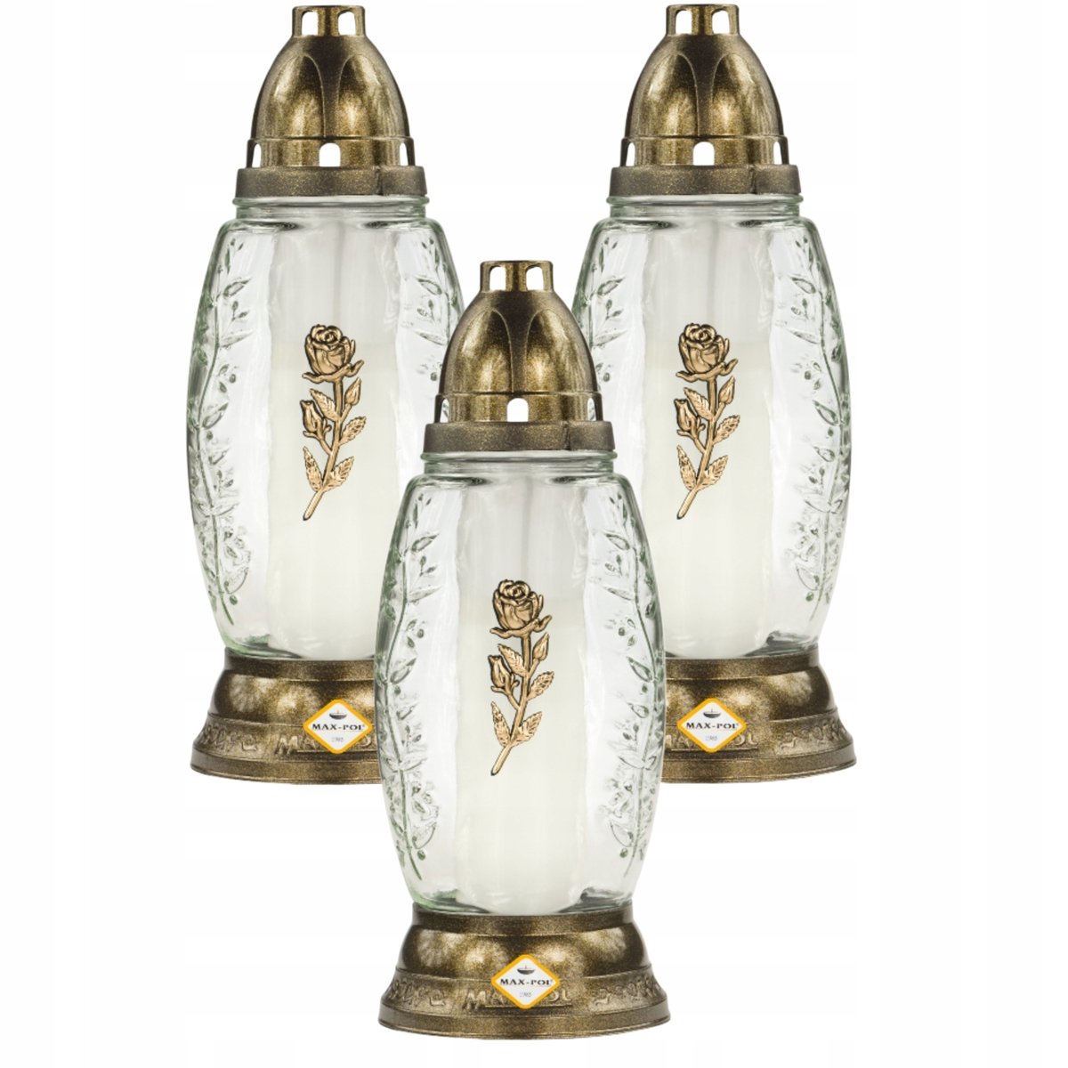 3X Piękny Subtelny Złoty Znicz Z Różą Premium Eleganckie Znicze Na Grób ...