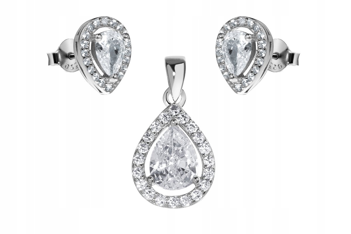 SREBRNY SUBTELNY ZESTAW DELIKATNEJ BIŻUTERII ŁEZKI Z NOCĄ KAIRU 925 ...