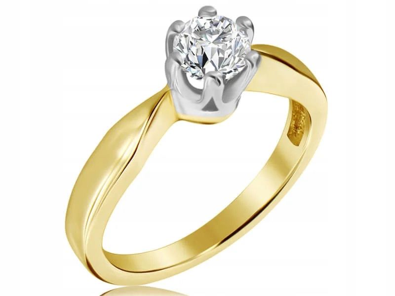 Subtelny pierścionek zaręczynowy z dwukolorowego złota 585 z diamentem ...