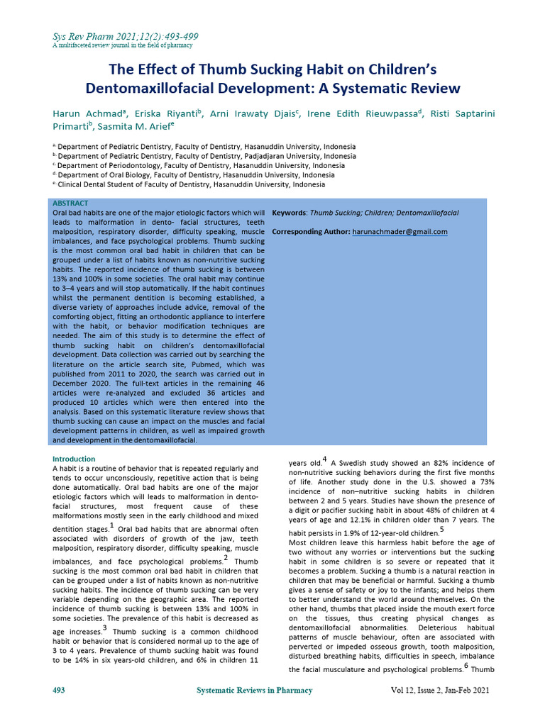 The Effect of Thumb Sucking Habit On Chi | PDF | Mouth | Dental Anatomy