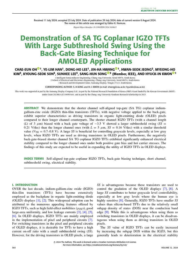 (PDF) Demonstration of SA TG Coplanar IGZO TFTs With Large Subthreshold ...