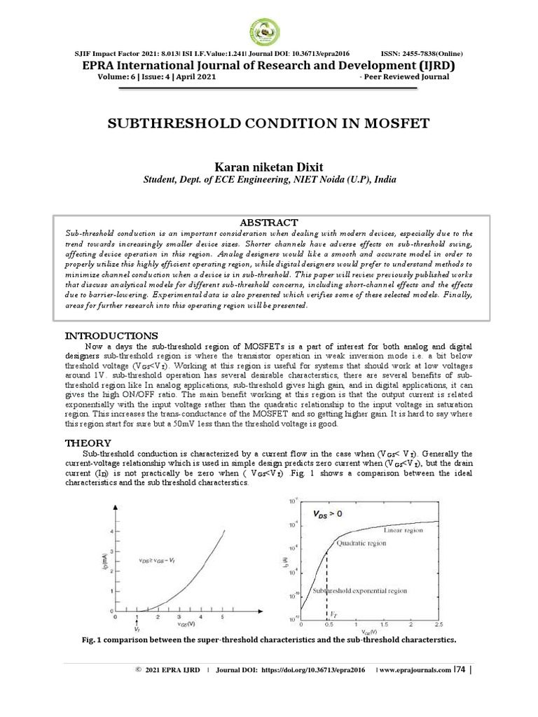 Subthreshold Conduction in MOSFETs Explained | PDF | Mosfet | Field ...