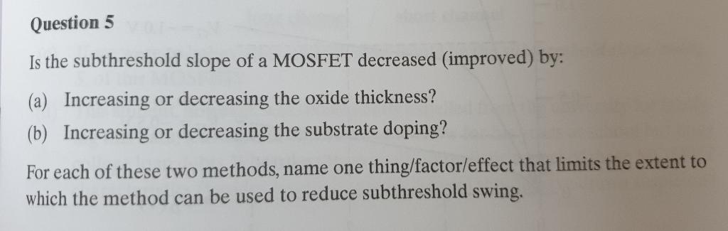 Solved Is the subthreshold slope of a MOSFET decreased | Chegg.com