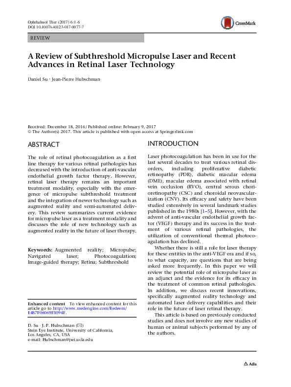 (PDF) A Review of Subthreshold Micropulse Laser and Recent Advances in ...