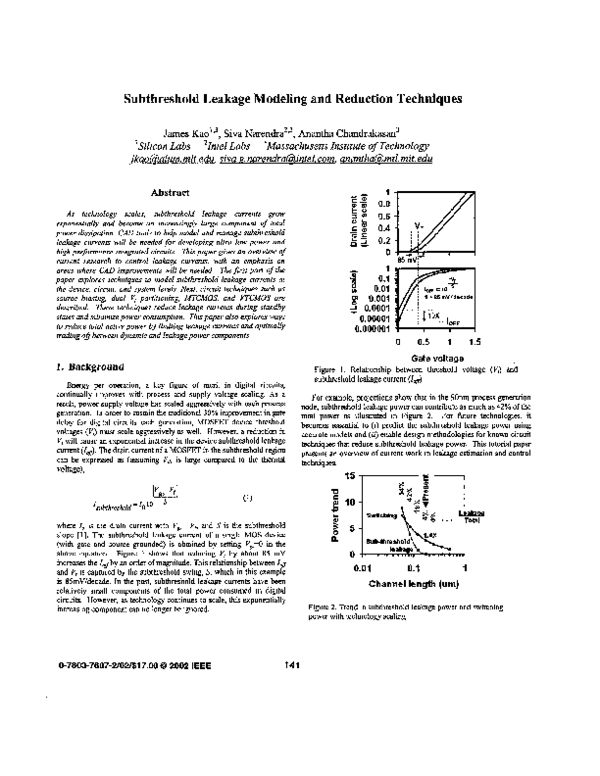 (PDF) Subthreshold leakage modeling and reduction techniques