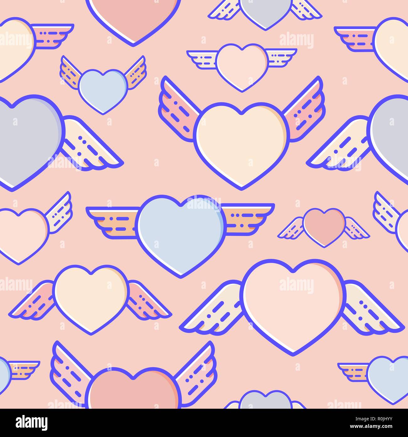 Flying hearts seamless pattern. Subtle pastel colours, flat design ...