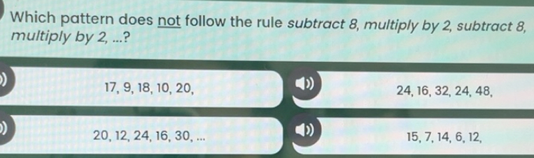 Solved: Which pattern does not follow the rule subtract 8, multiply by ...
