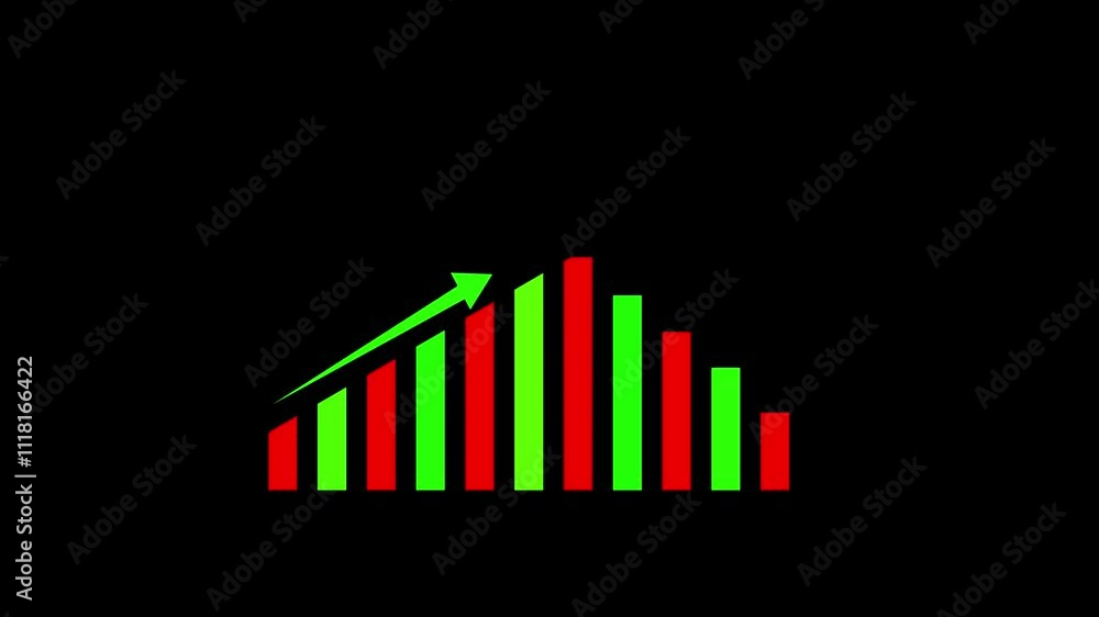 Business Bar Graph and Rising Arrow Animation with Glow on Transparent ...