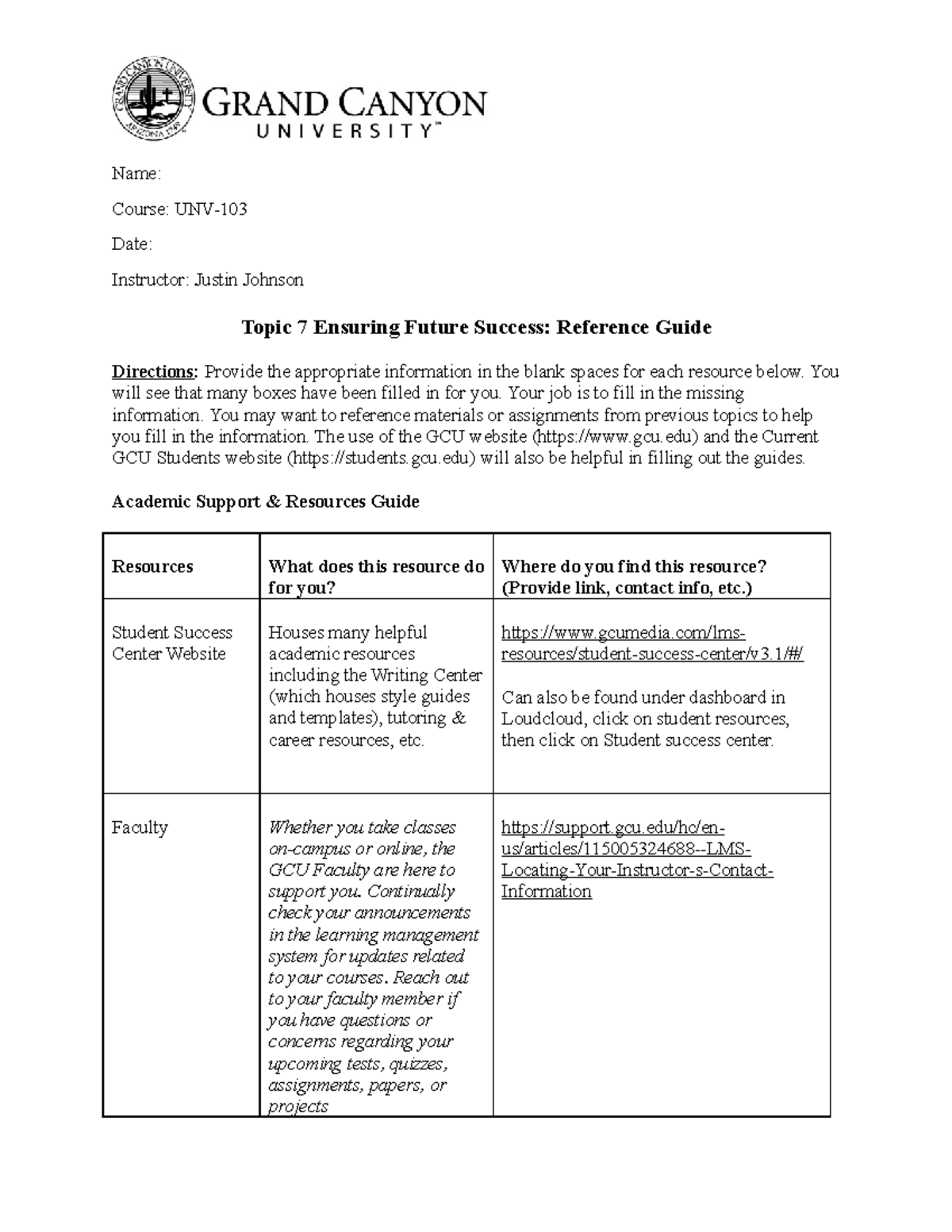 UNV 103 T7 Ensuring Future Success Reference Guide Online - Name ...
