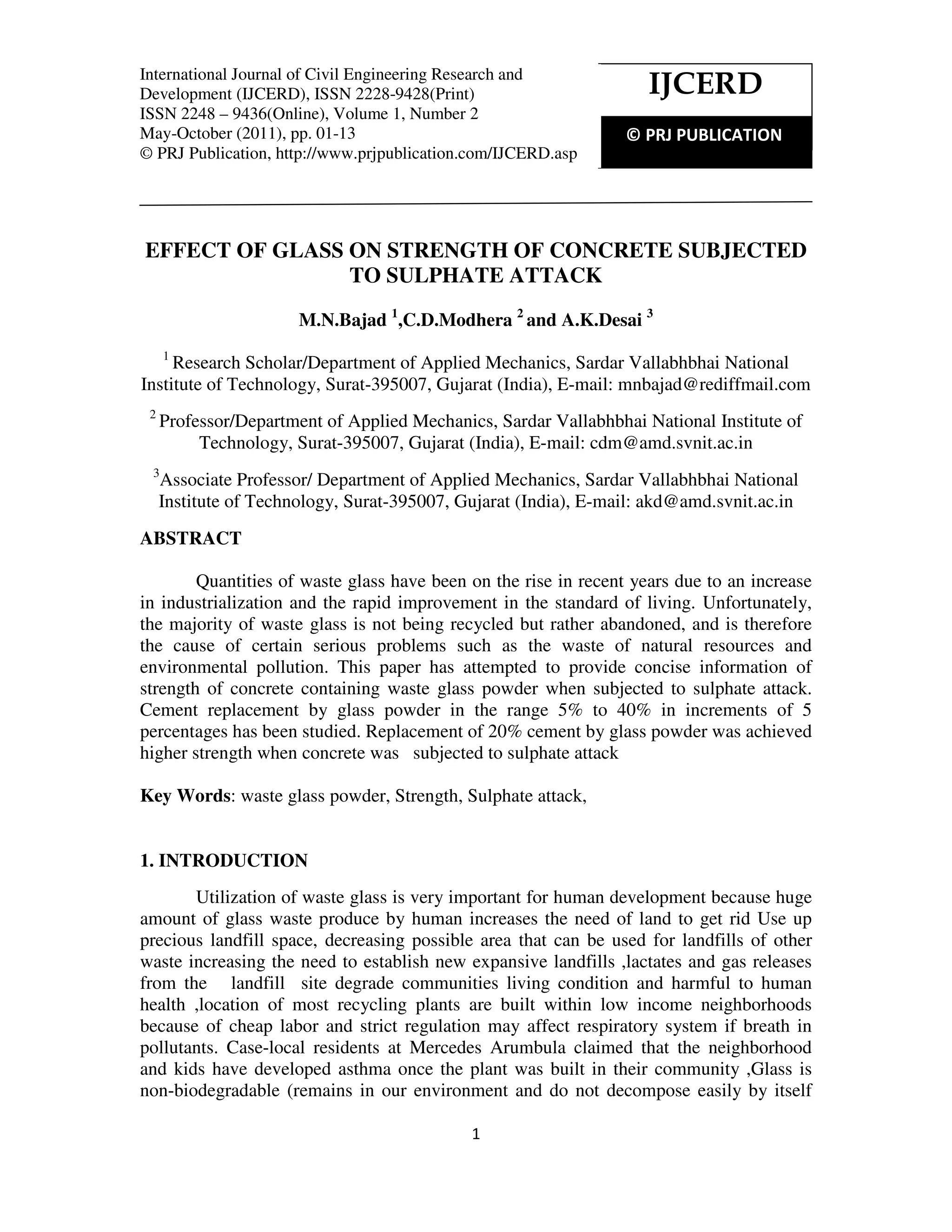 Effect of glass on strength of concrete subjected | PDF