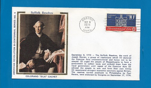 American Revolution - Suffolk Resolves Sep 9, 1974 Colorano Lot2 | eBay