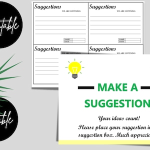 Employee Suggestion Box Sign and Cards: HR Template (digital Download ...