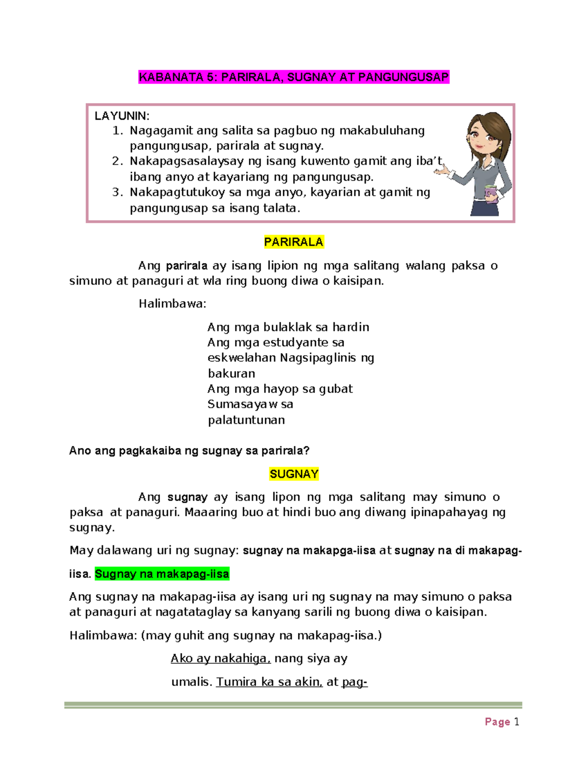 Kabanata 5 Parirala, Sugnay AT Pangungusap - KABANATA 5: PARIRALA ...
