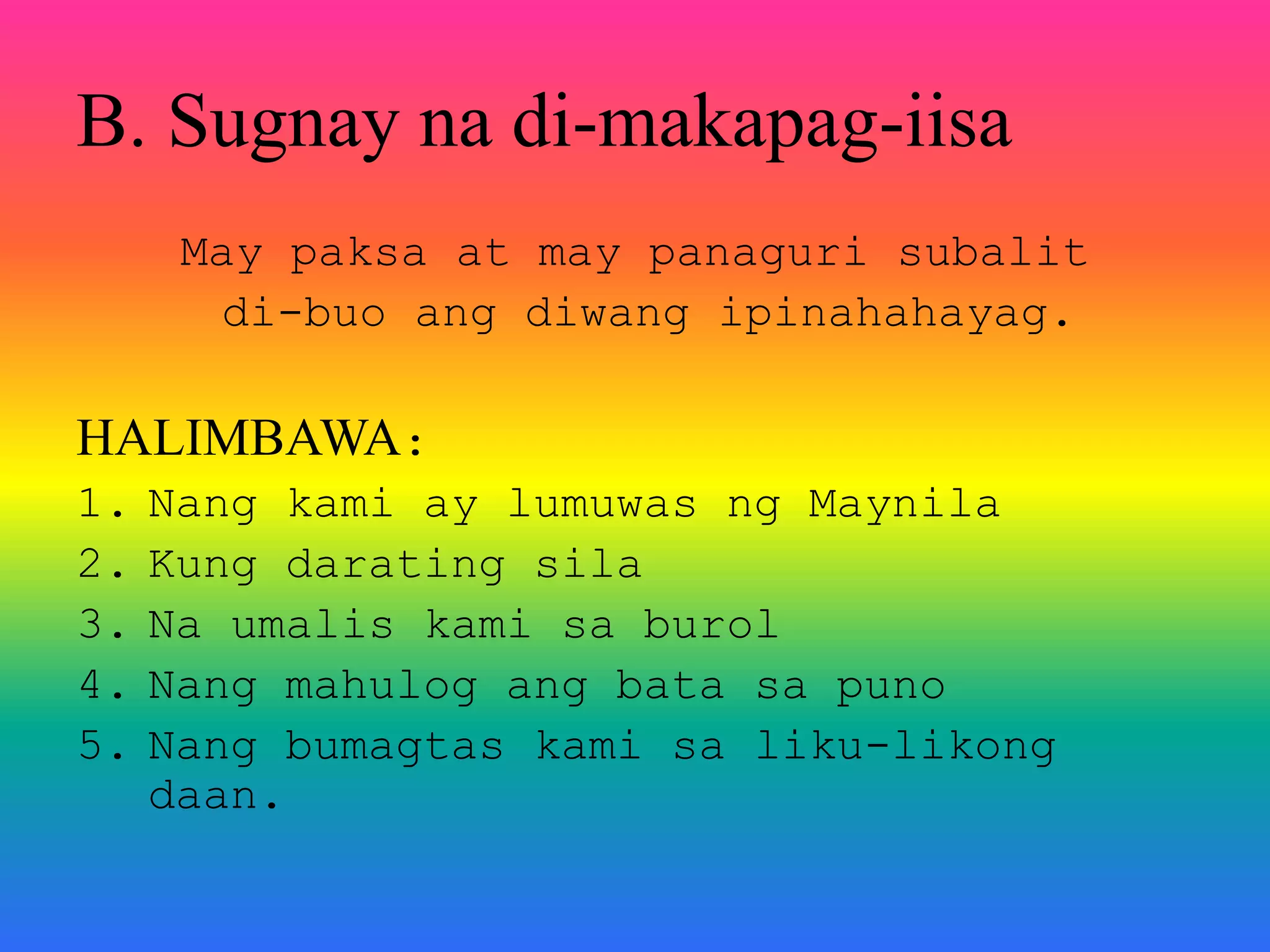 Payak na sugnay na makapag iisa halimbawa - Brainly.ph