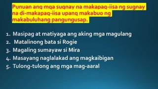 Sintaksis Parirala Sugnay at Pangungusap 1 - LAYUNIN: Nagagamit ang ...