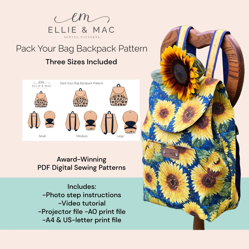 Pack Your Bag Backpack sewing pattern (3 sizes with video) - Sew Modern ...