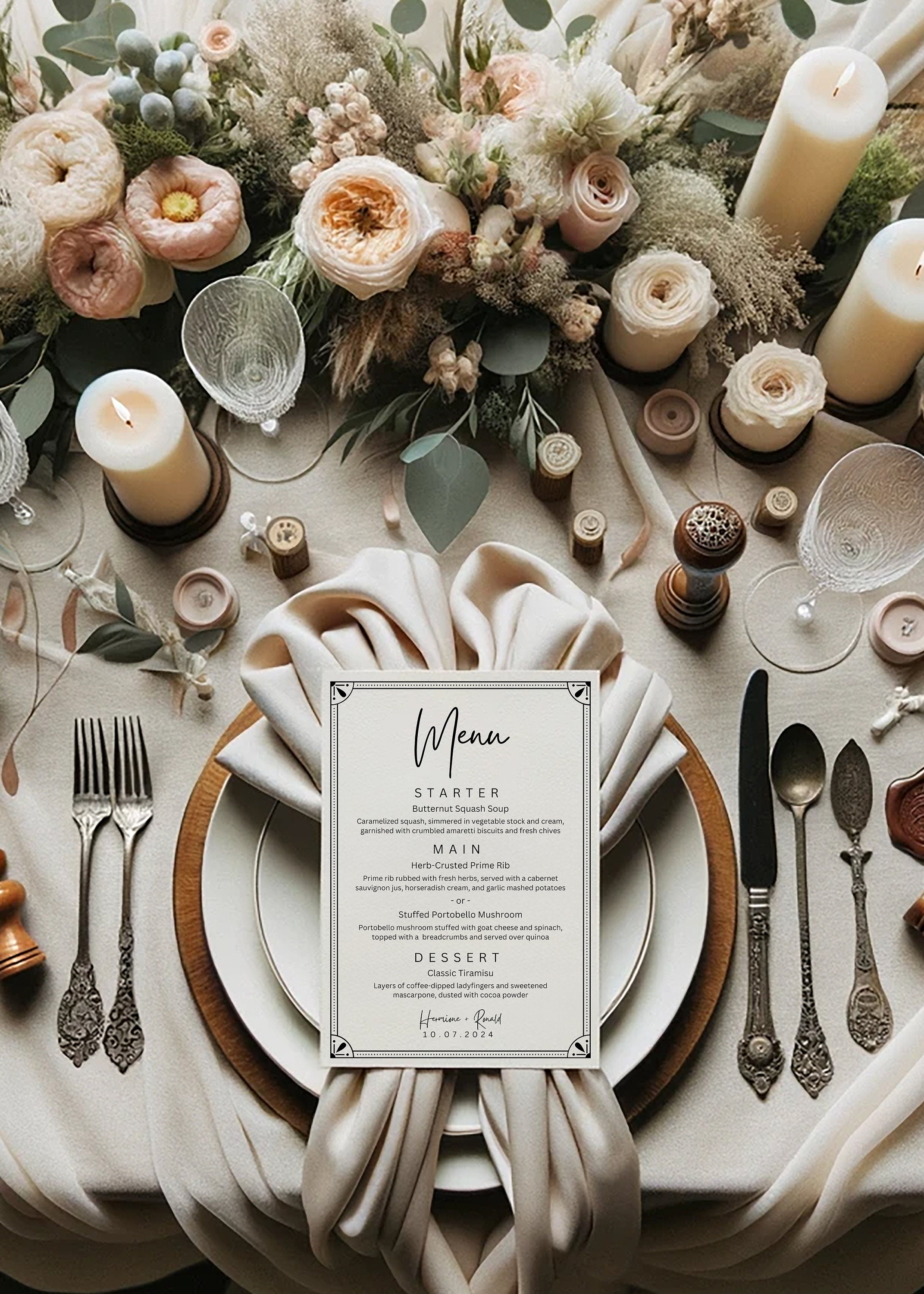 Wedding Menu ideas and Guide: Per Setting vs. Table Menus