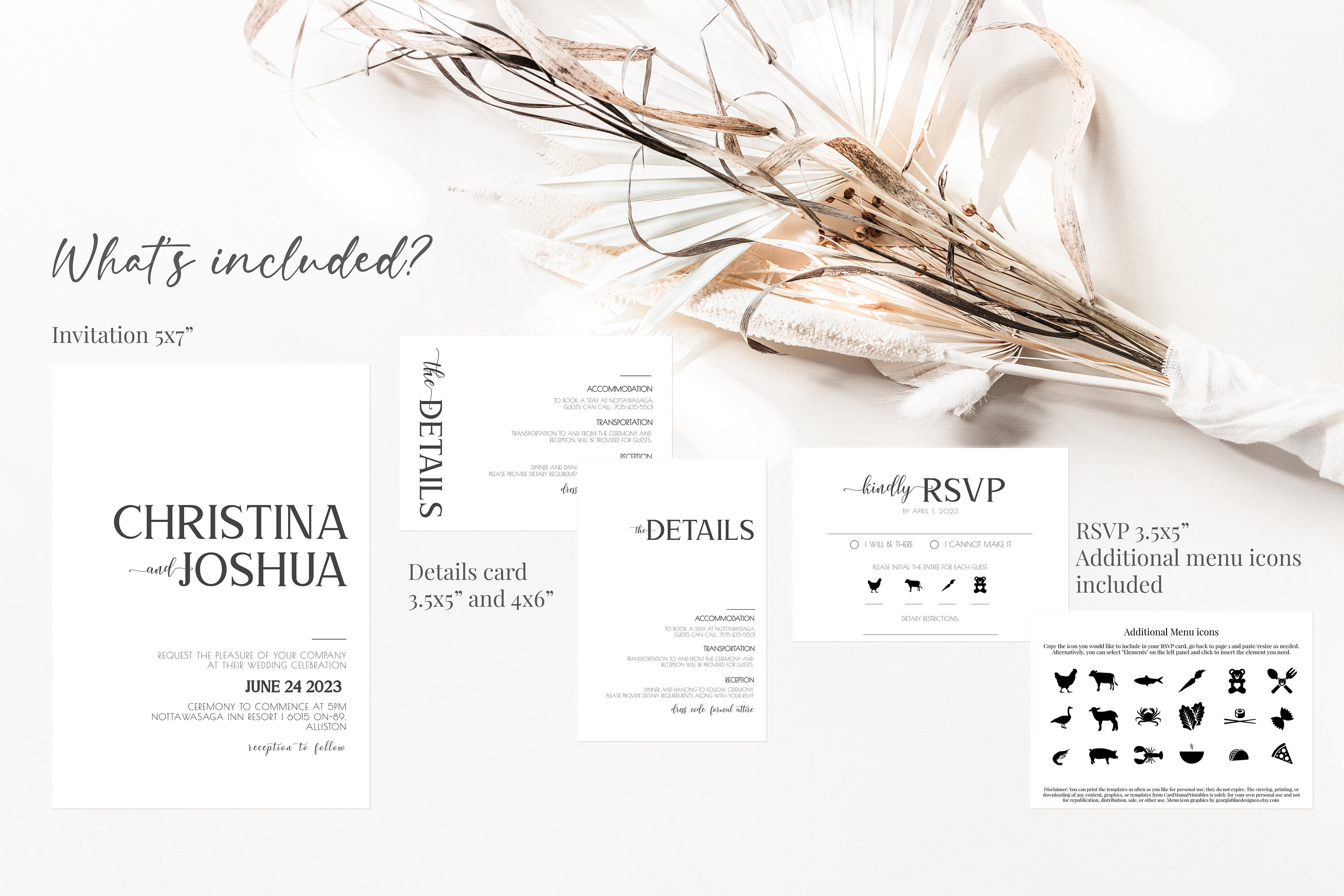 Minimalist Wedding Invitation Suite 5 Item Bundle save the Date, Invite ...