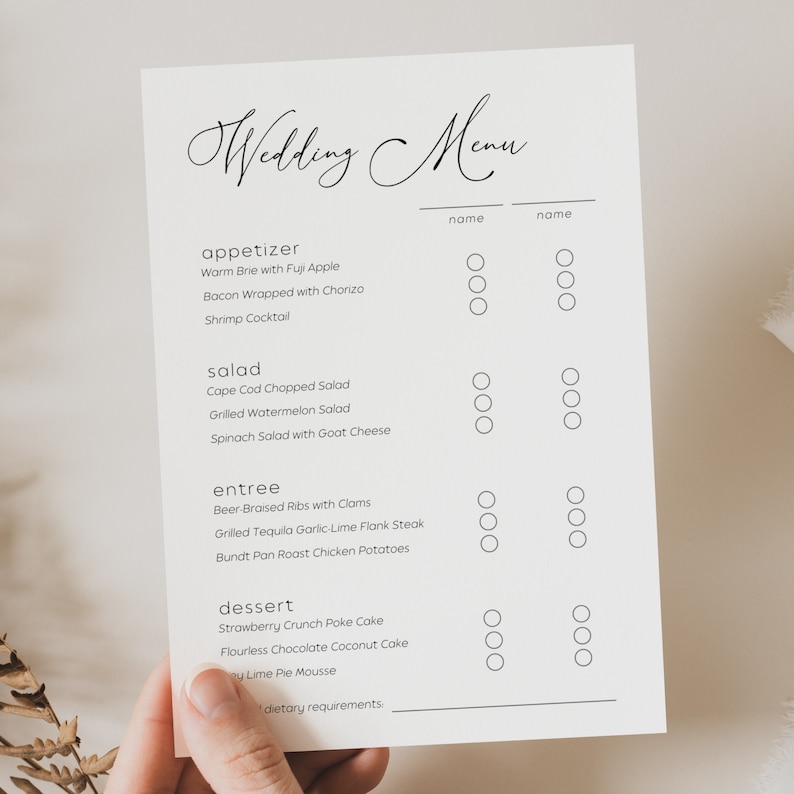 Wedding Invitations With Menu Options Meal Choice Card for Wedding ...