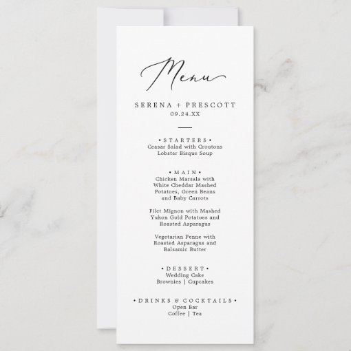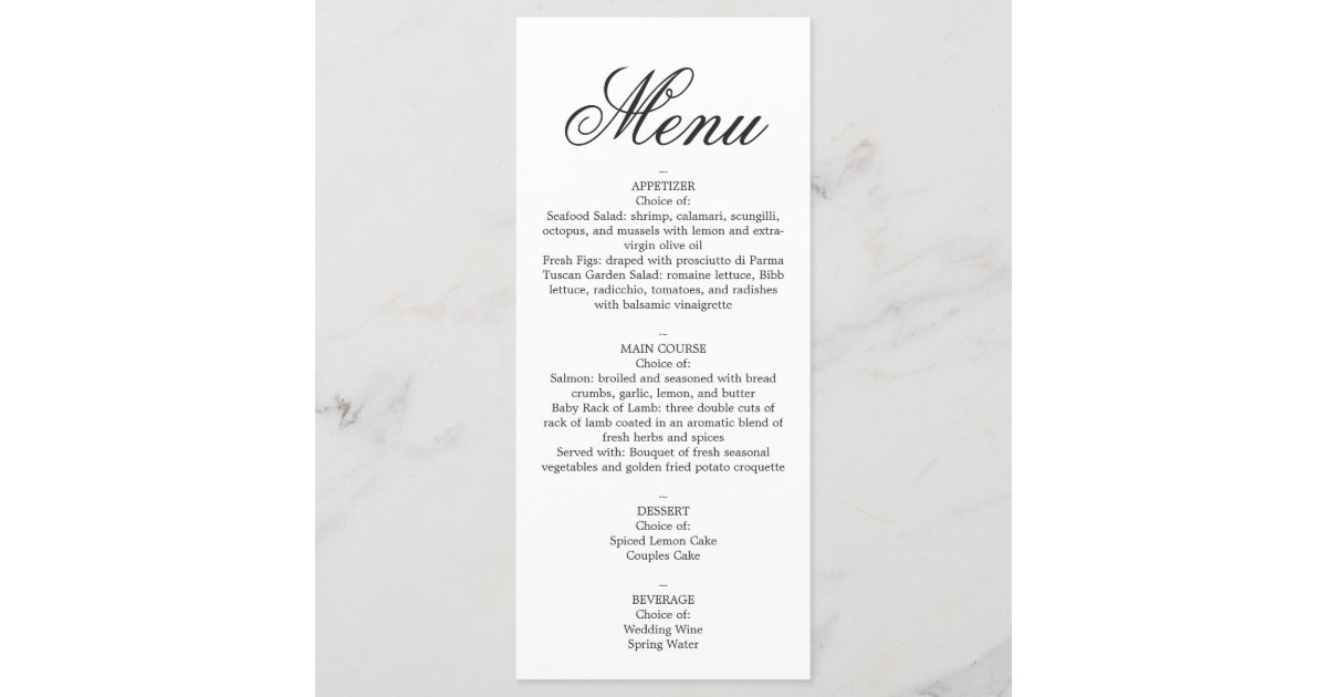 Delicate Black Printable or Printed Wedding Menu Invitation | Zazzle