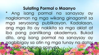 Pagsulat NG Sulating Pormal at Di-Pormal | PDF