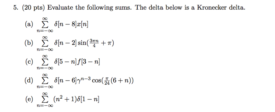 Solved 5. (20 pts) Evaluate the following sums. The delta | Chegg.com