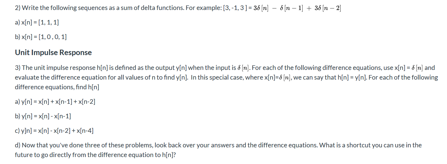 Solved 2) Write the following sequences as a sum of delta | Chegg.com