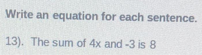 Solved Write an equation for each sentence. 13). The sum of | Chegg.com