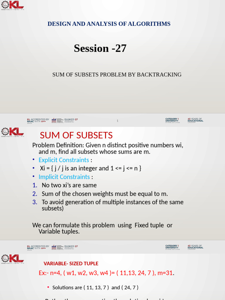 Sum of Subsets using BackTracking by Mrs.E.Ponmalar, Head and Associate ...