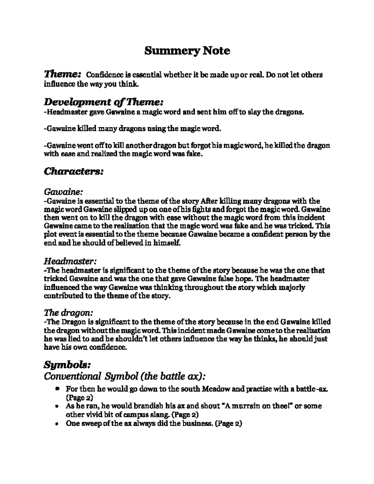 Summary note - essay - Summery Note Theme: Confidence is essential ...