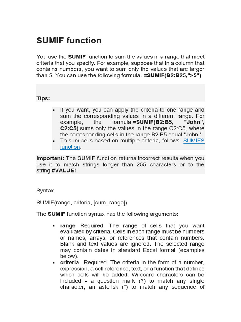 SUMIF and SUMIFS Function Guide | PDF | Function (Mathematics ...