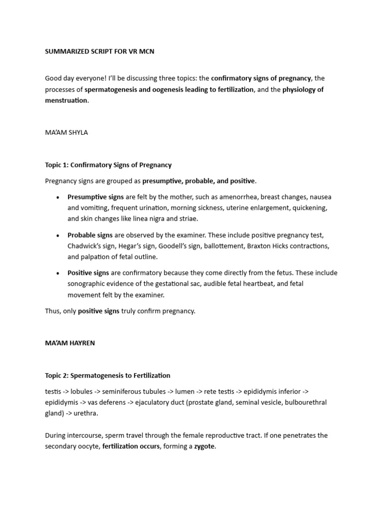 Summarized Script For VR MCN | PDF | Menstrual Cycle | Women's Health