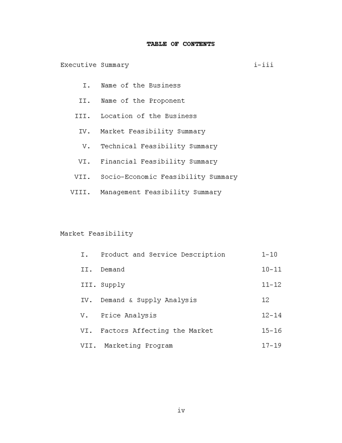To Change the content - TABLE OF CONTENTS Title Page i I. EXECUTTIVE ...