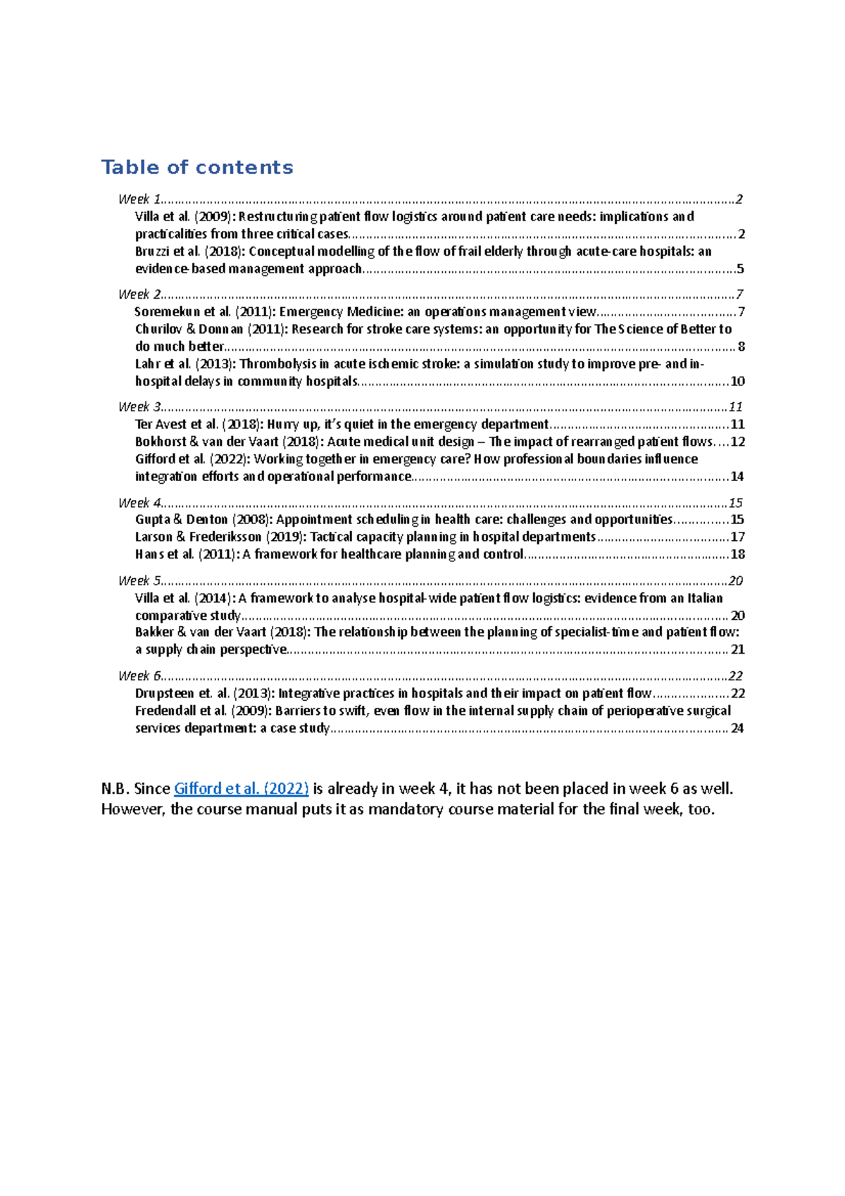 Summary papers (22/23) - Table of contents Week - Studeersnel