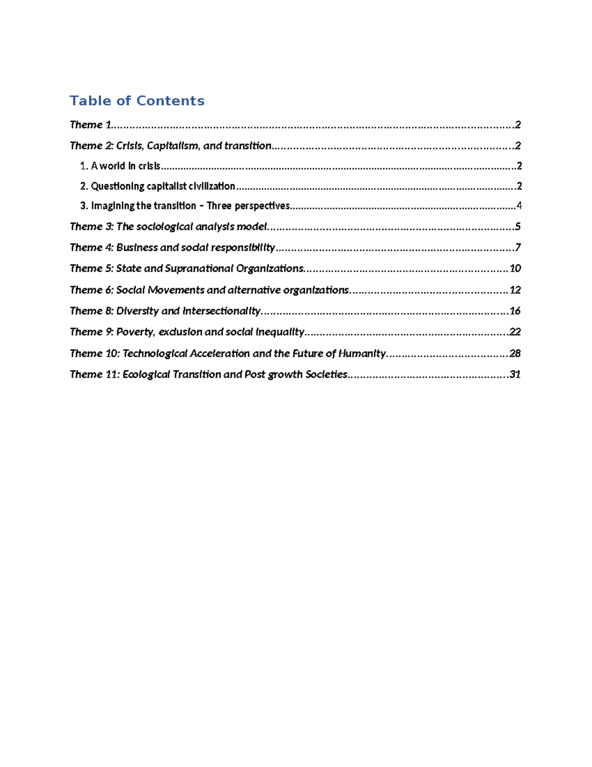 DD revision summary - Table of Contents Theme - Studocu