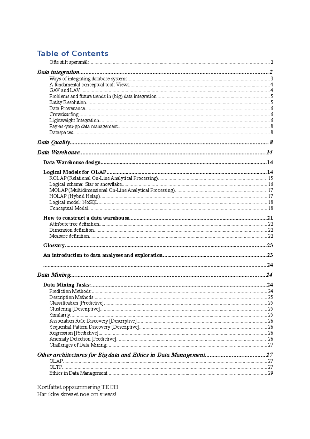 Table Of Contents Summary PDF