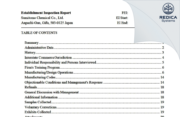 Sumitomo Chemical Company, Limited - EIR, 2025-12-01 - Redica Systems Store