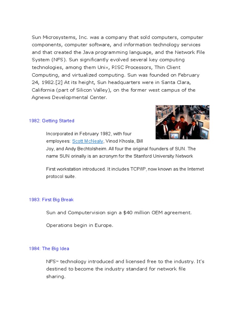 Sun Microsystems - Company - Computing History