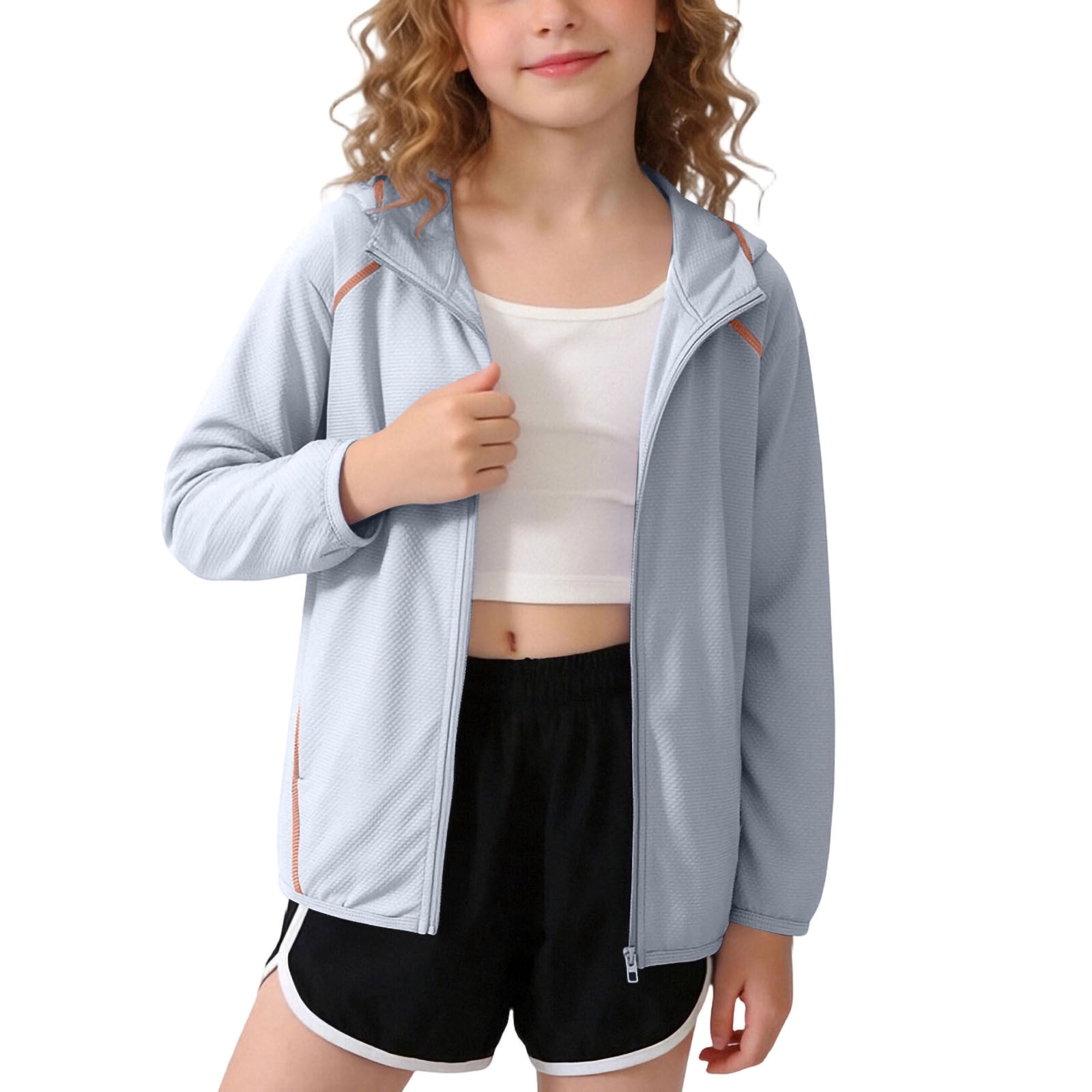 Cethrio Girls Sun Protection Jackets, Lightweight Zipper Outdoor Long ...