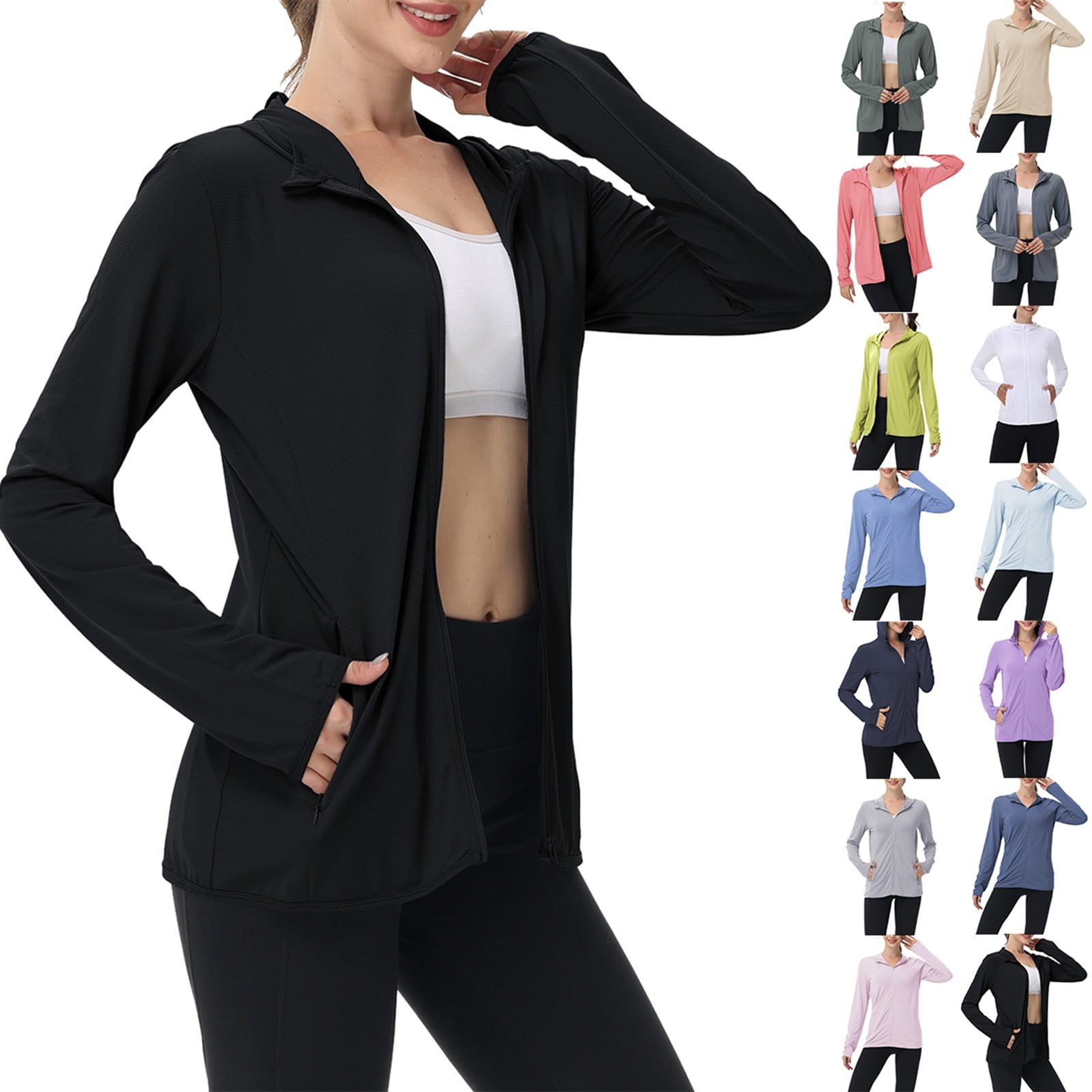 Ahabrexf Sun Protection Jacket for Women Long Sleeve Solid Color ...