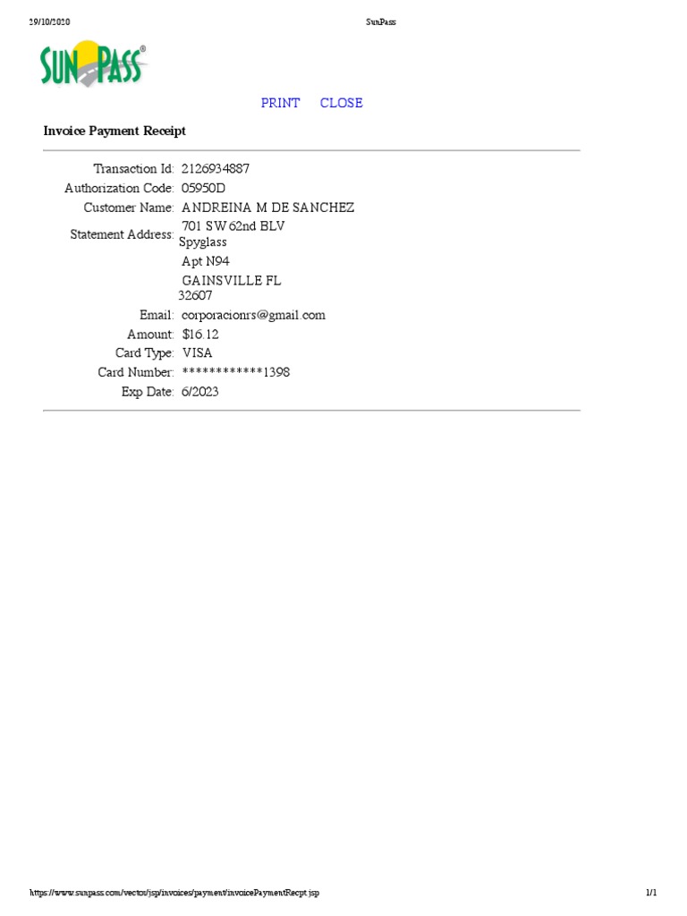 SunPass Invoice Payment Receipt | PDF | Finance & Money Management | Law