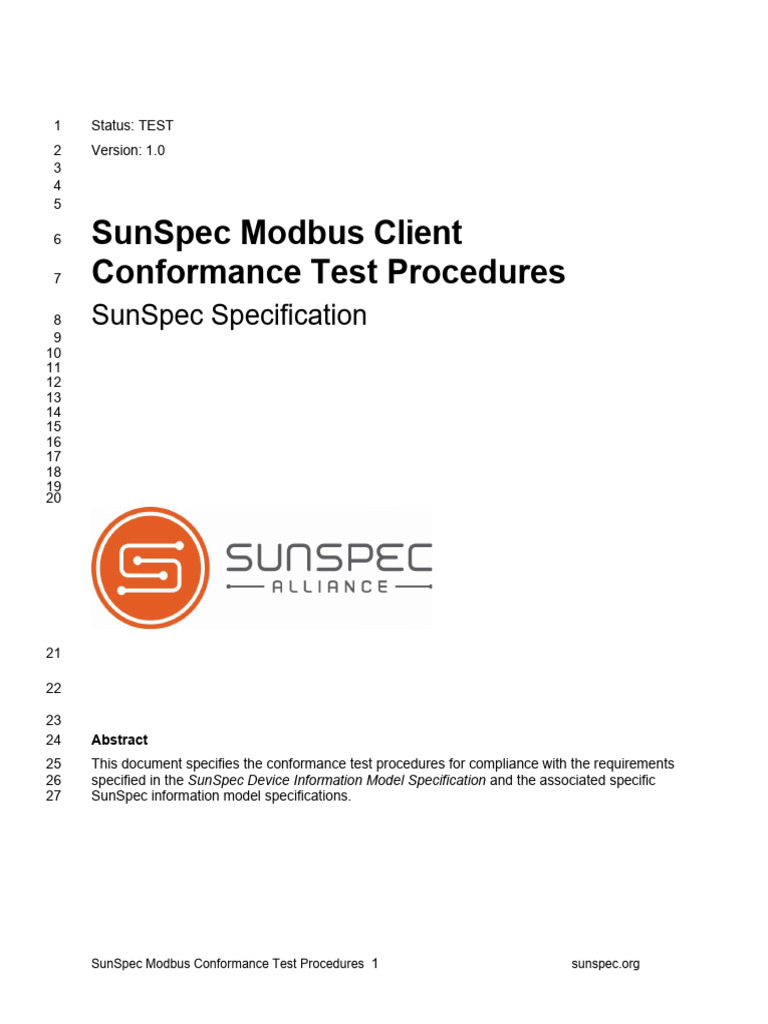 SunSpec Modbus Conformance Test Procedures v1 1 1 | PDF | Transmission ...