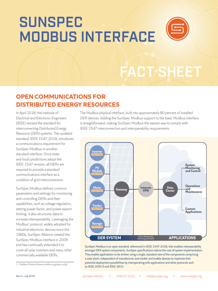 SunSpec Modbus FactSheet RevA 2019 07 Web | PDF | Distributed ...