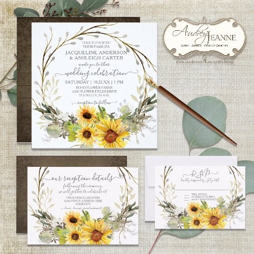 Sunflower Frame Wedding Invitation Suite