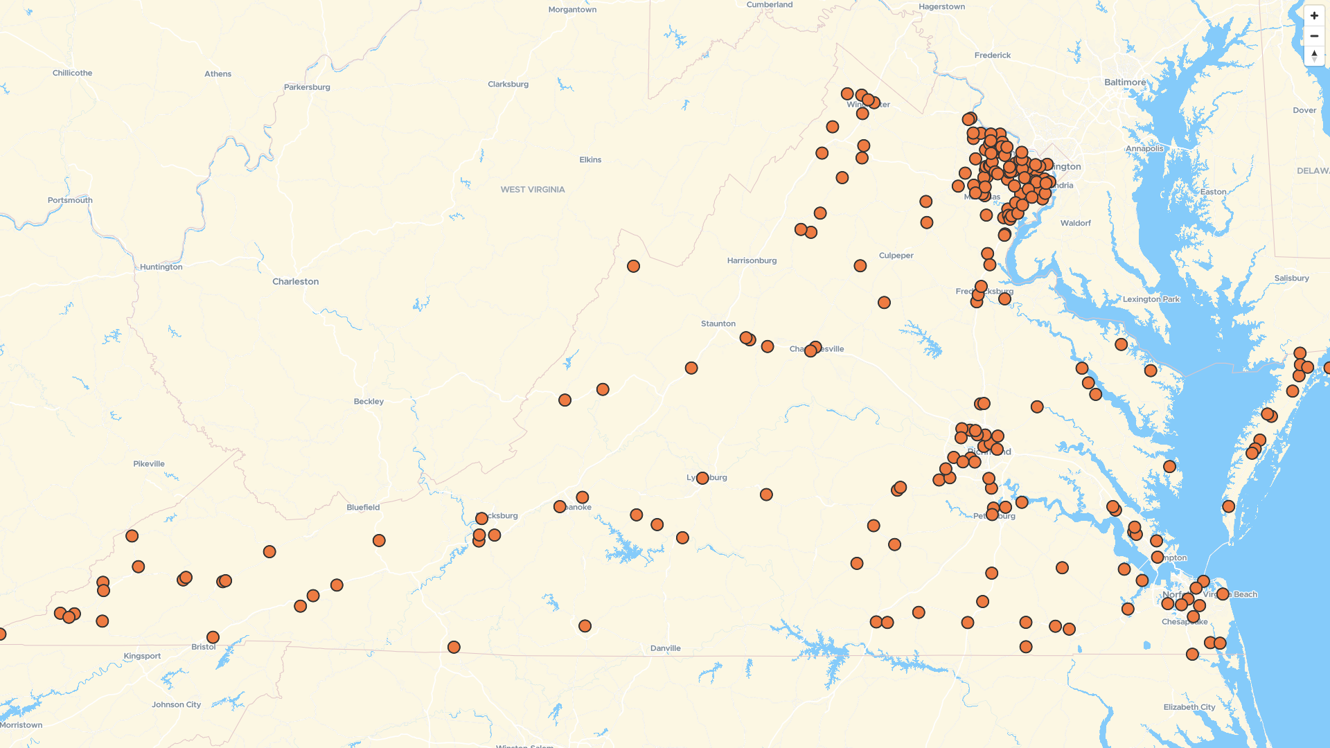 Map of Sunoco Gas Station locations in Virginia, US | Mapstack
