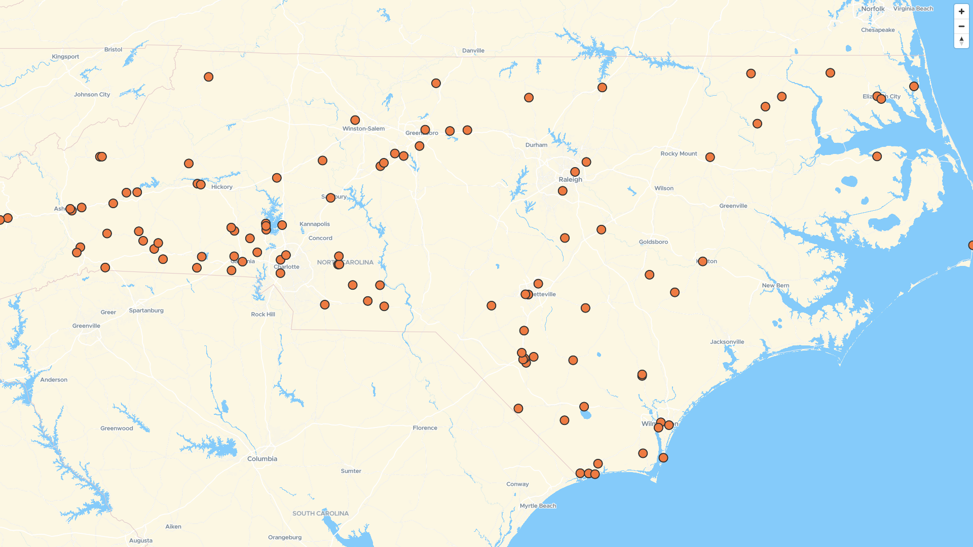 Map of Sunoco Gas Station locations in North Carolina, US | Mapstack
