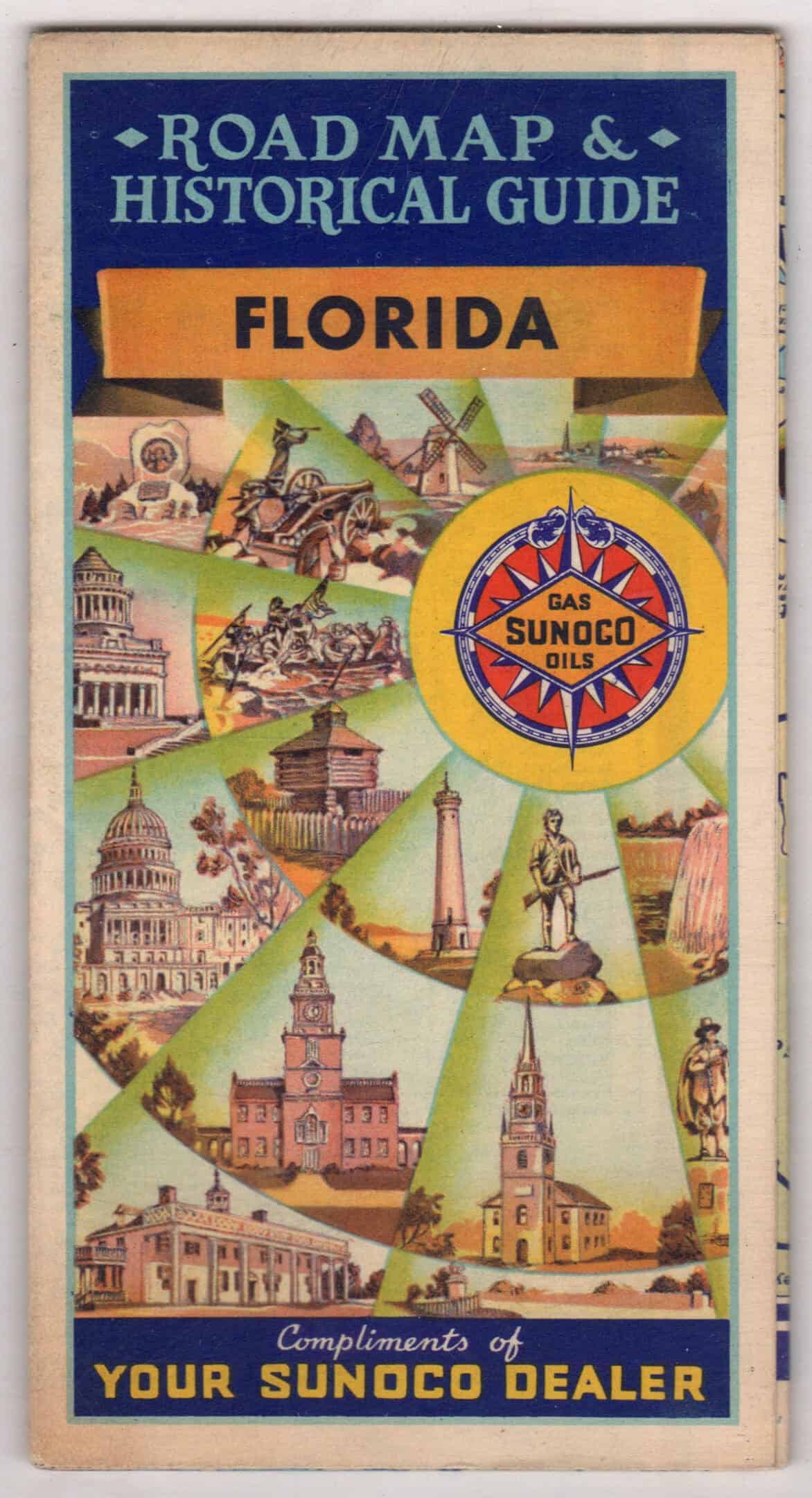 1950s Sunoco Oil Gas service station Florida road map-Blue Sunoco ...
