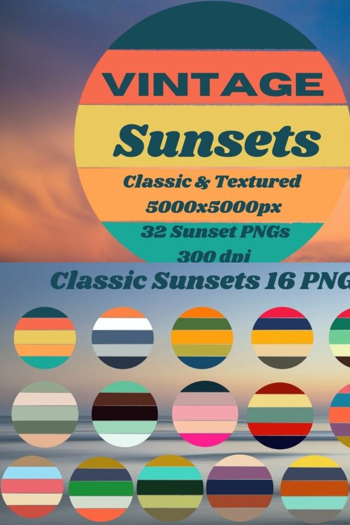 Vintage Retro Sunset Landscapes Bundle Graphic by atlasart · Creative ...