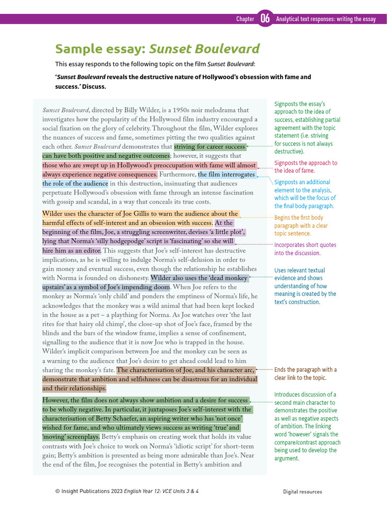 Sample Essay Sunset Boulevard | PDF